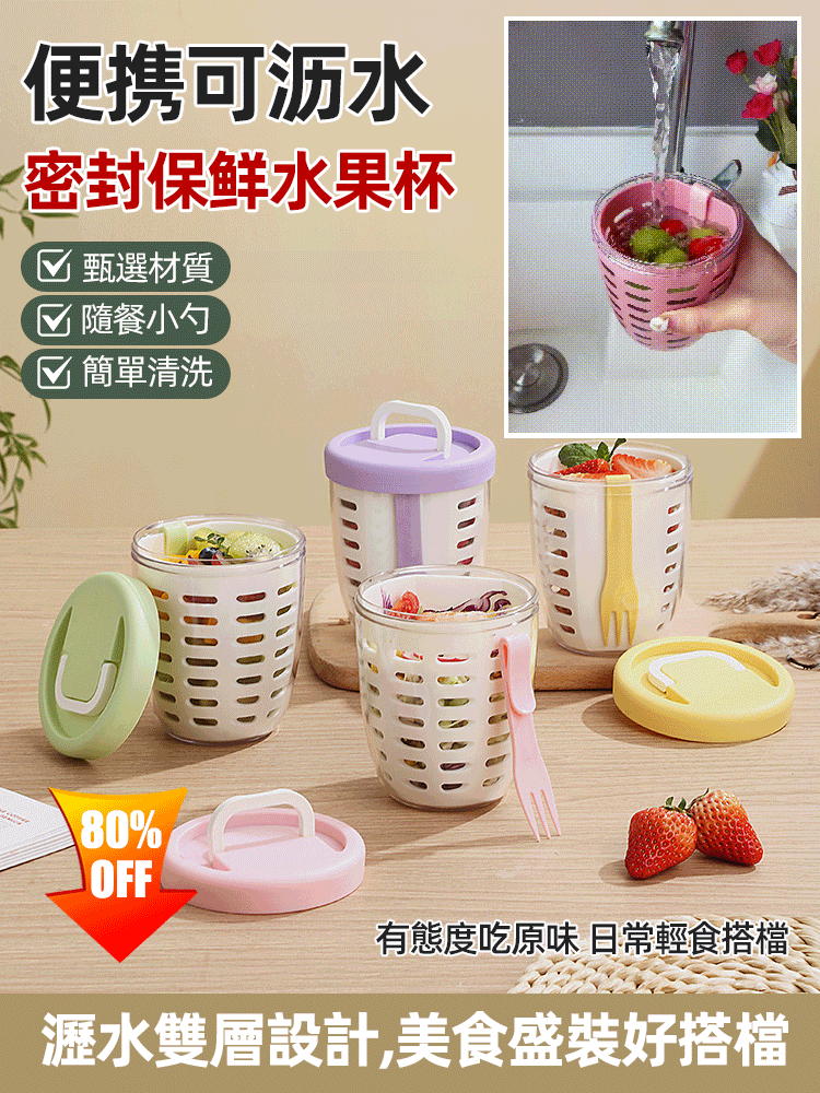 4分鐘前便攜可瀝水密封保鮮水果杯 - 買三送三1299